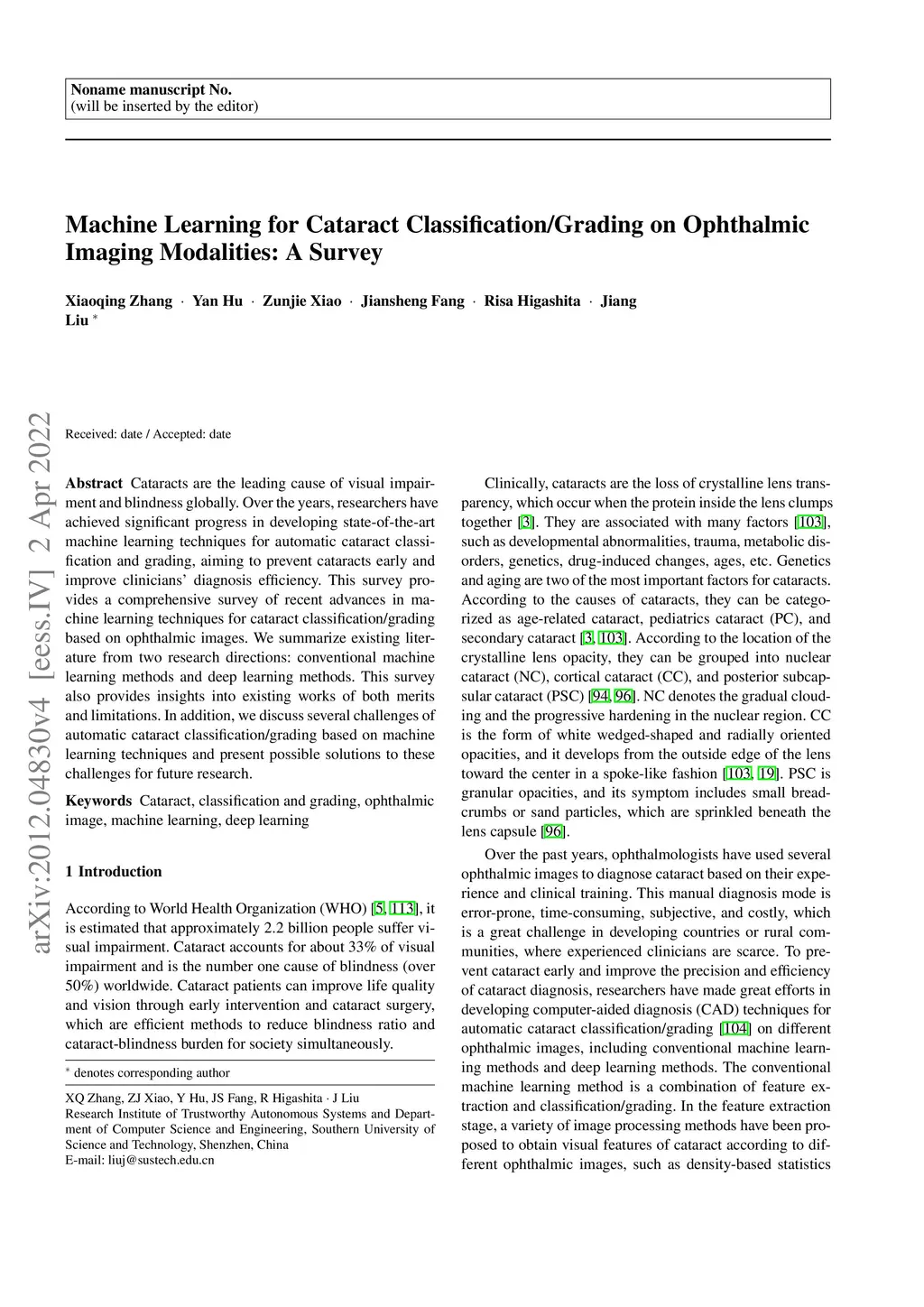 Machine Learning for Cataract Classification and Grading on Ophthalmic