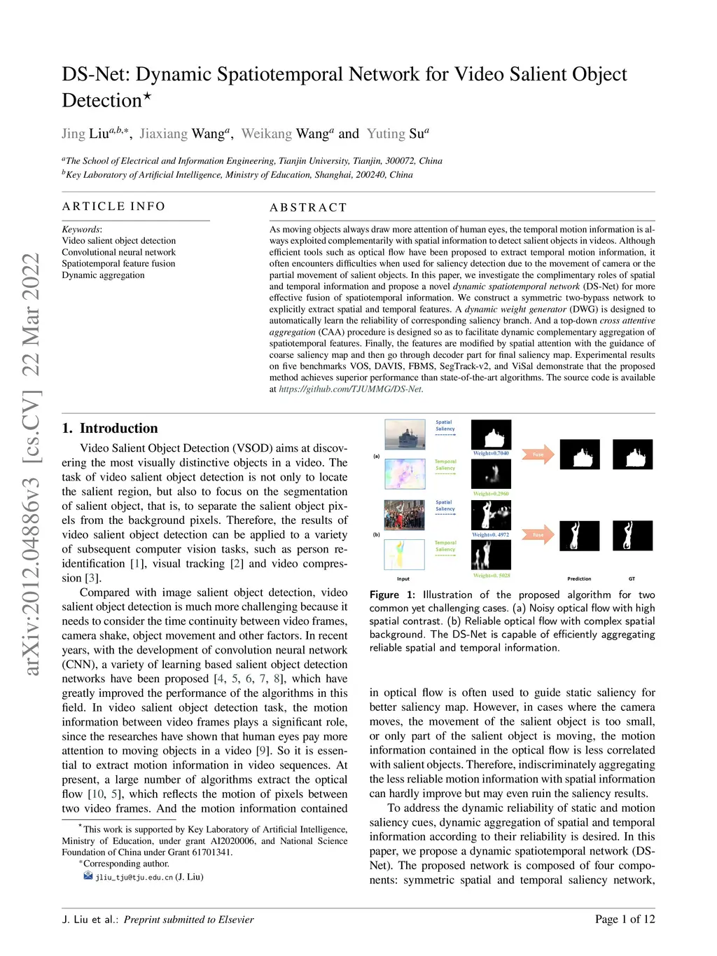 DS-Net: Dynamic Spatiotemporal Network for Video Salient Object