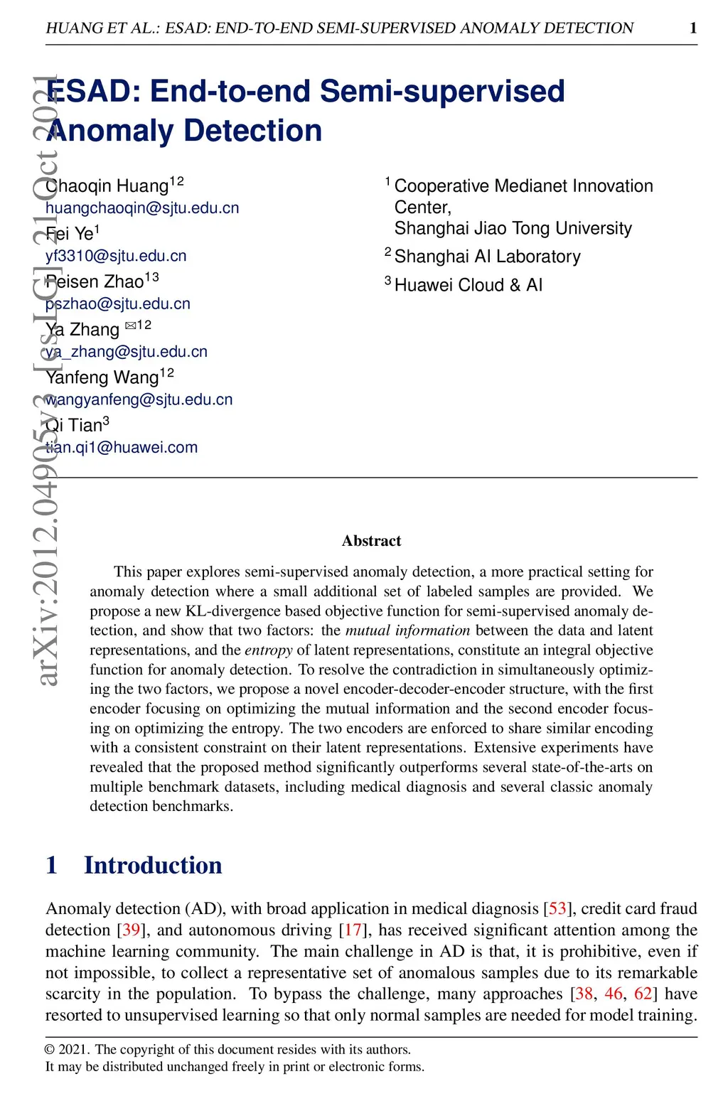 ESAD: End-to-end Deep Semi-supervised Anomaly Detection