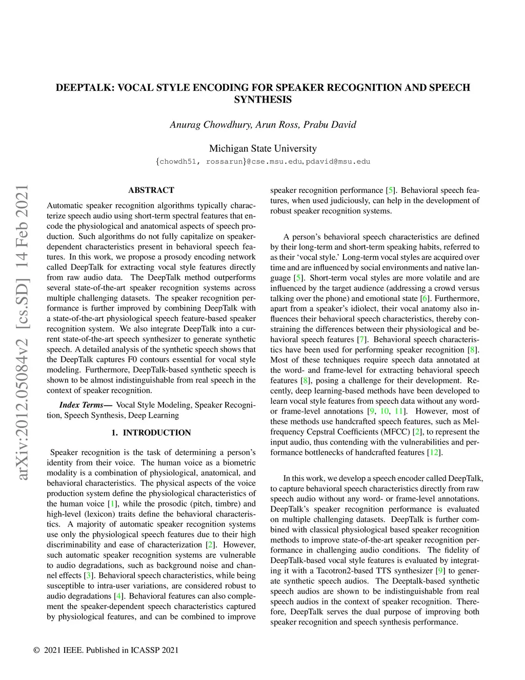 DeepTalk: Vocal Style Encoding for Speaker Recognition and Speech