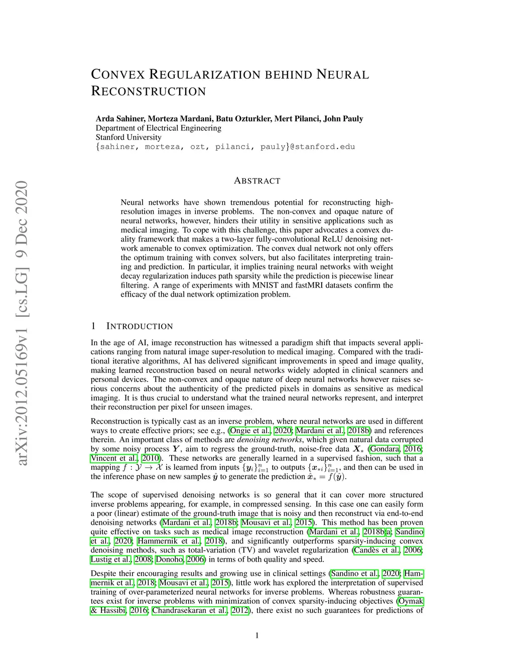 Convex Regularization Behind Neural Reconstruction