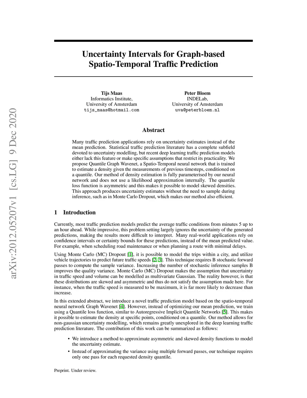 Uncertainty Intervals for Graph-based Spatio-Temporal Traffic Prediction