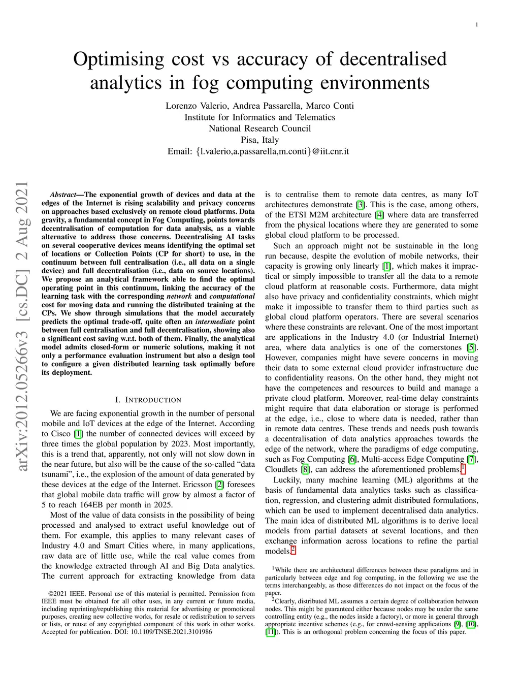 Optimising cost vs accuracy of decentralised analytics in fog computing