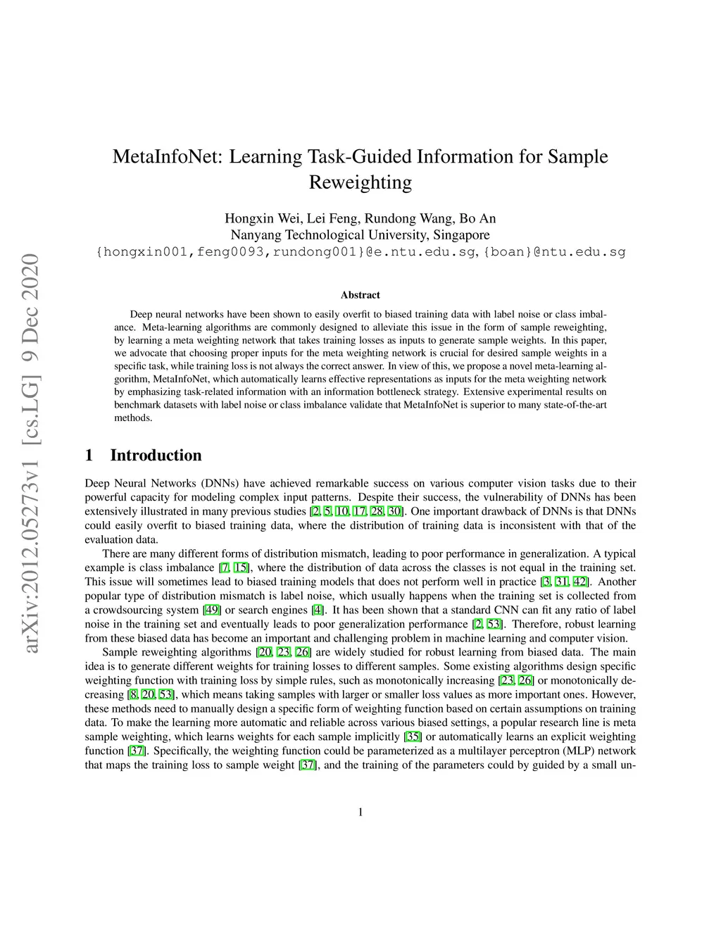 MetaInfoNet: Learning Task-Guided Information for Sample Reweighting