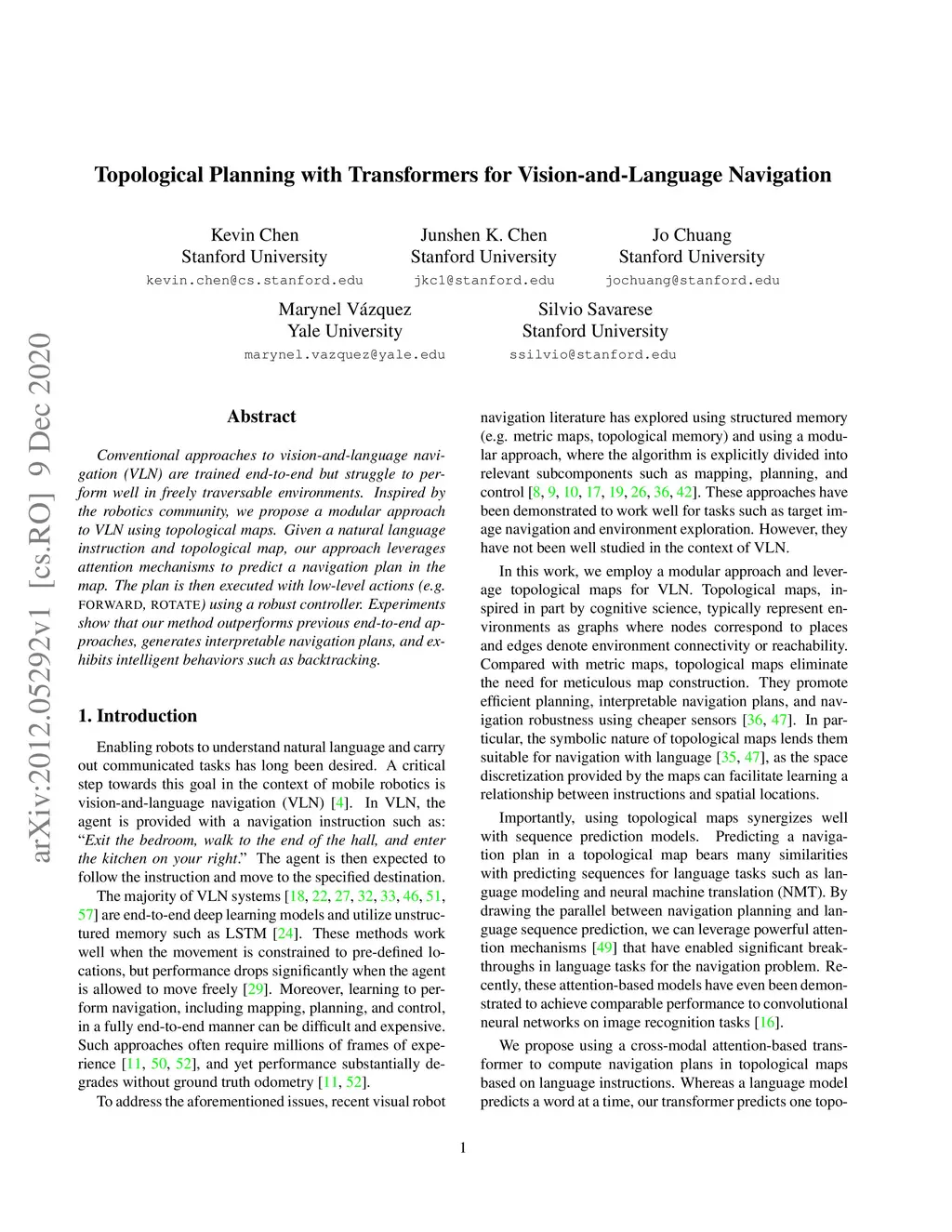 Conventional approaches to vision-and-language navigation (VLN) are trained end-to-end but struggle to perform well in freely traversable environments. Inspired by the robotics community, we propose a modular approach to VLN using topological maps. Given a natural language instruction and topological map, our approach leverages attention mechanisms to predict a navigation plan in the map. The plan is then executed with low-level actions (e.g. forward, rotate) using a robust controller. Experiments show that our method outperforms previous end-to-end approaches, generates interpretable navigation plans, and exhibits intelligent behaviors such as backtracking.