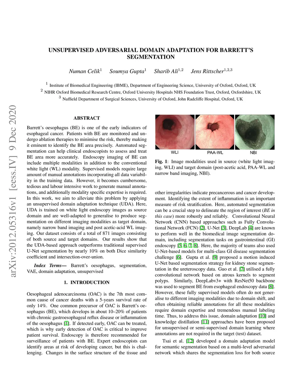 Unsupervised Adversarial Domain Adaptation For Barrett's Segmentation