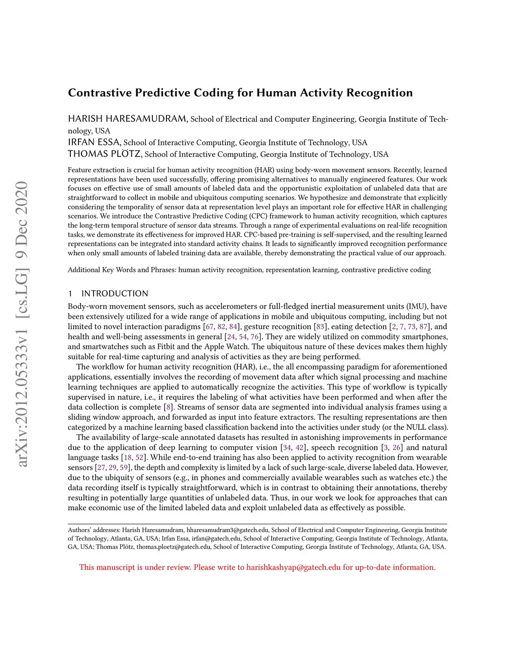 Contrastive Predictive Coding for Human Activity Recognition