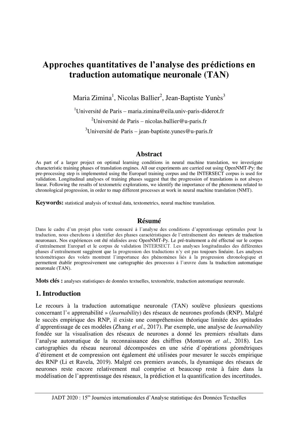 As part of a larger project on optimal learning conditions in neural machine translation, we investigate characteristic training phases of translation engines. All our experiments are carried out using OpenNMT-Py: the pre-processing step is implemented using the Europarl training corpus and the INTERSECT corpus is used for validation. Longitudinal analyses of training phases suggest that the progression of translations is not always linear. Following the results of textometric explorations, we identify the importance of the phenomena related to chronological progression, in order to map different processes at work in neural machine translation (NMT).