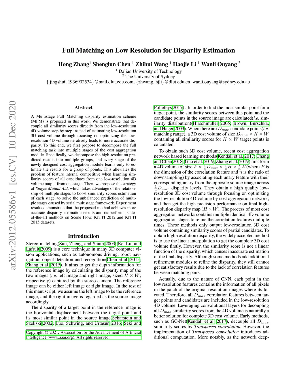 A Multistage Full Matching disparity estimation scheme (MFM) is proposed in this work. We demonstrate that decouple all similarity scores directly from the low-resolution 4D volume step by step instead of estimating low-resolution 3D cost volume through focusing on optimizing the low-resolution 4D volume iteratively leads to more accurate disparity. To this end, we first propose to decompose the full matching task into multiple stages of the cost aggregation module. Specifically, we decompose the high-resolution predicted results into multiple groups, and every stage of the newly designed cost aggregation module learns only to estimate the results for a group of points. This alleviates the problem of feature internal competitive when learning similarity scores of all candidates from one low-resolution 4D volume output from one stage. Then, we propose the strategy of \emph{Stages Mutual Aid}, which takes advantage of the relationship of multiple stages to boost similarity scores estimation of each stage, to solve the unbalanced prediction of multiple stages caused by serial multistage framework. Experiment results demonstrate that the proposed method achieves more accurate disparity estimation results and outperforms state-of-the-art methods on Scene Flow, KITTI 2012 and KITTI 2015 datasets.