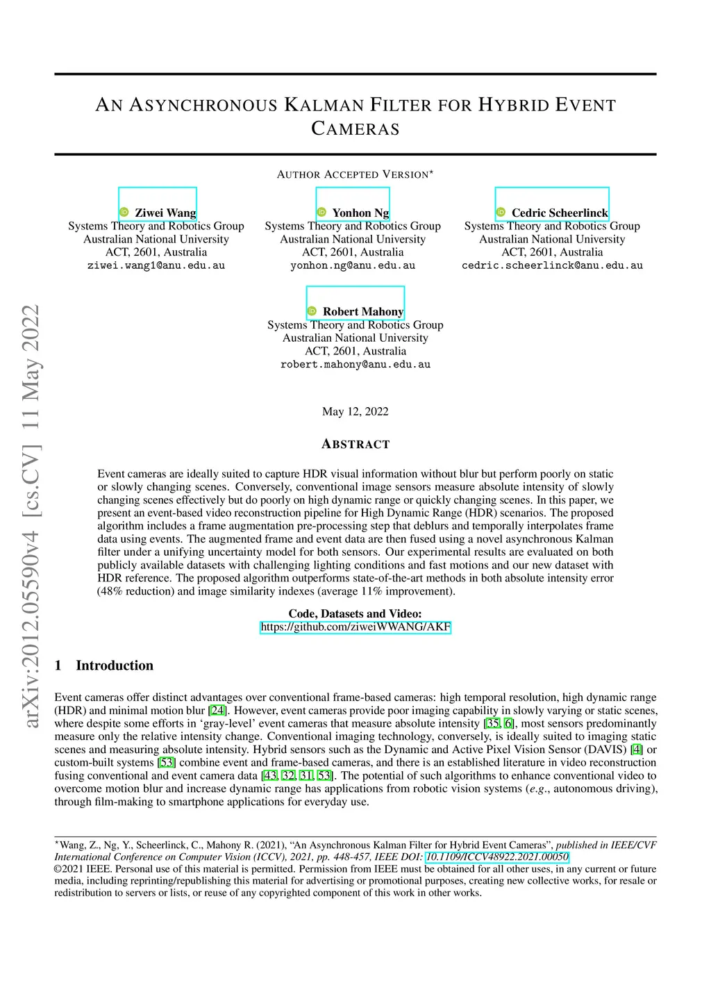 An Asynchronous Kalman Filter for Hybrid Event Cameras