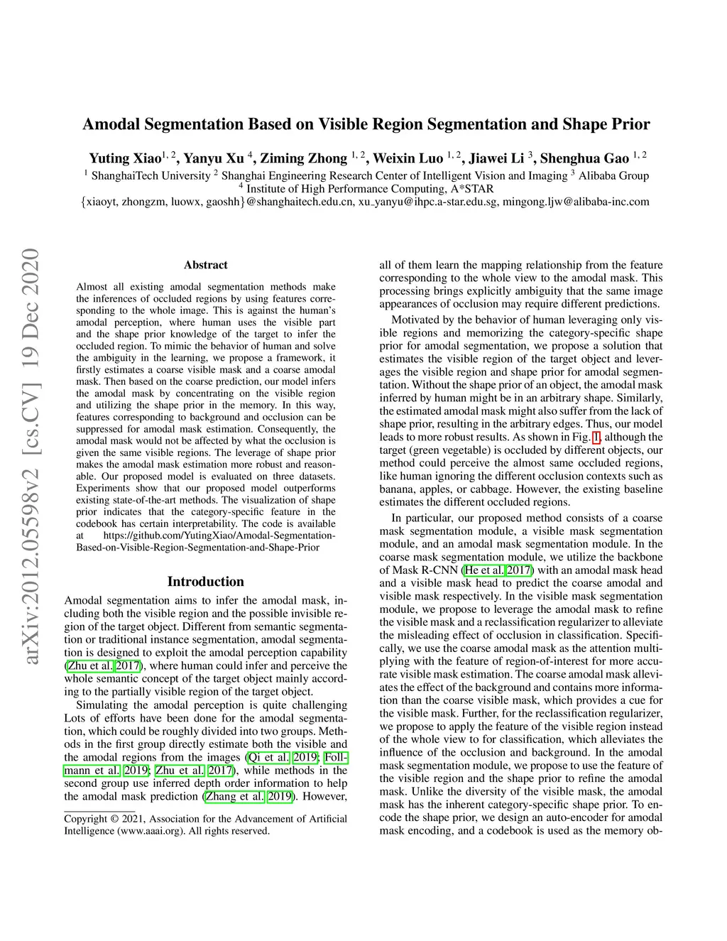 Amodal Segmentation Based on Visible Region Segmentation and Shape Prior