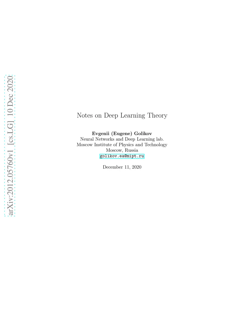 These are the notes for the lectures that I was giving during Fall 2020 at the Moscow Institute of Physics and Technology (MIPT) and at the Yandex School of Data Analysis (YSDA). The notes cover some aspects of initialization, loss landscape, generalization, and a neural tangent kernel theory. While many other topics (e.g. expressivity, a mean-field theory, a double descent phenomenon) are missing in the current version, we plan to add them in future revisions.