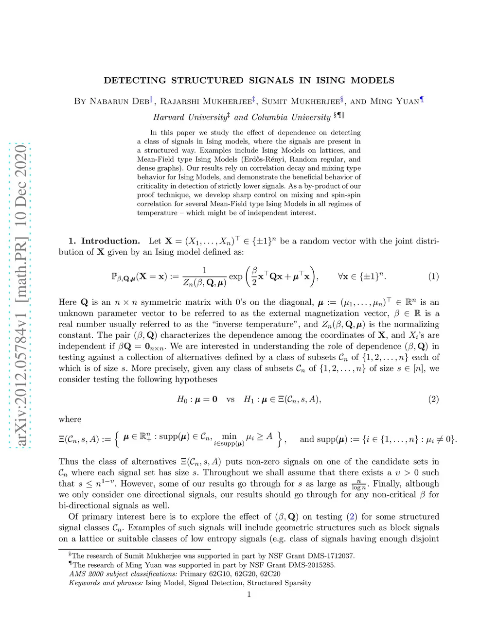 In this paper, we study the effect of dependence on detecting a class of signals in Ising models, where the signals are present in a structured way. Examples include Ising Models on lattices, and Mean-Field type Ising Models (Erd\H{o}s-R\'{e}nyi, Random regular, and dense graphs). Our results rely on correlation decay and mixing type behavior for Ising Models, and demonstrate the beneficial behavior of criticality in the detection of strictly lower signals. As a by-product of our proof technique, we develop sharp control on mixing and spin-spin correlation for several Mean-Field type Ising Models in all regimes of temperature -- which might be of independent interest.