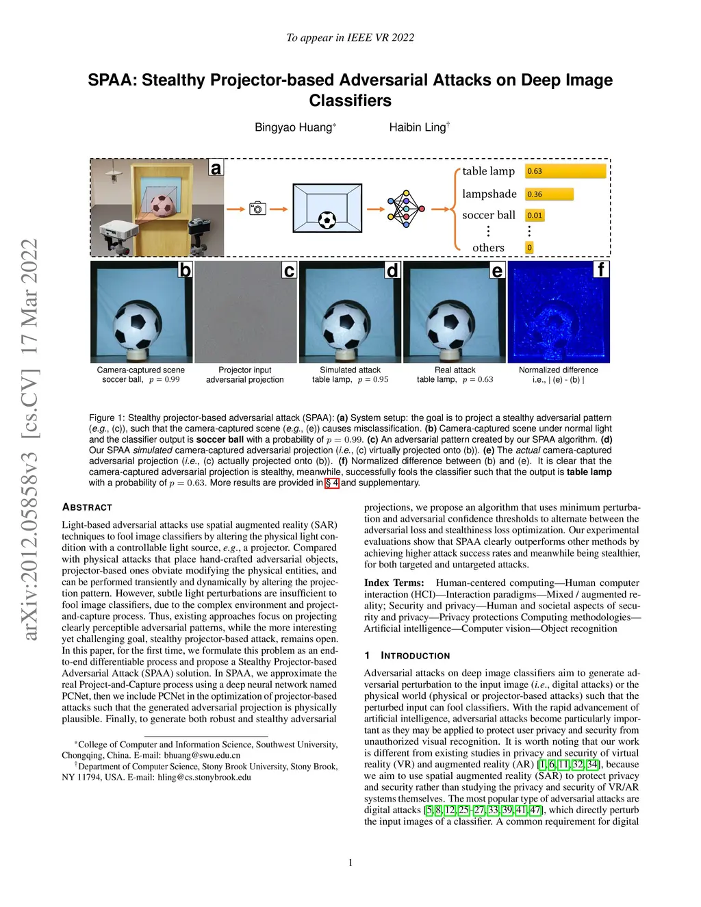 SPAA: Stealthy Projector-based Adversarial Attacks on Deep Image
