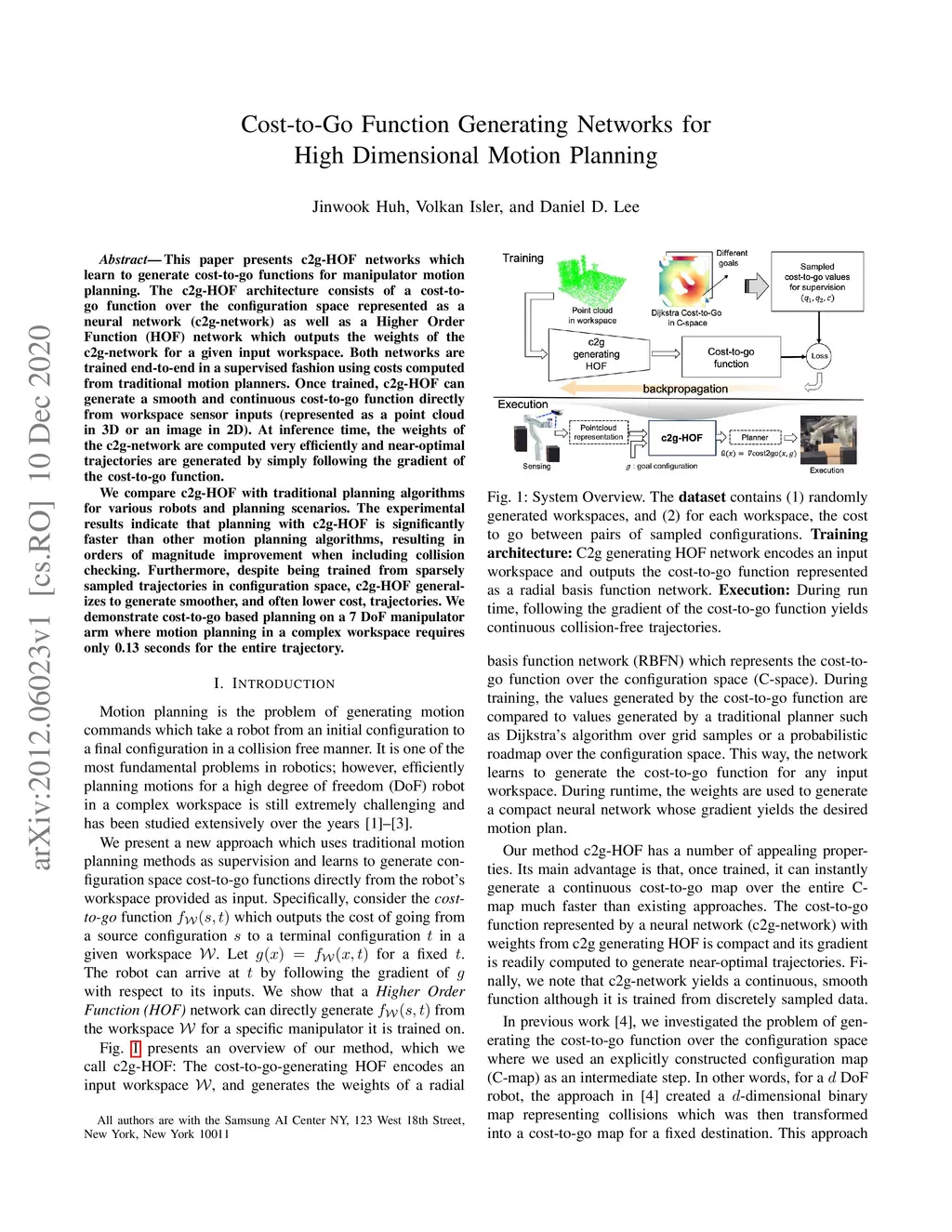 Cost-to-Go Function Generating Networks for High Dimensional Motion