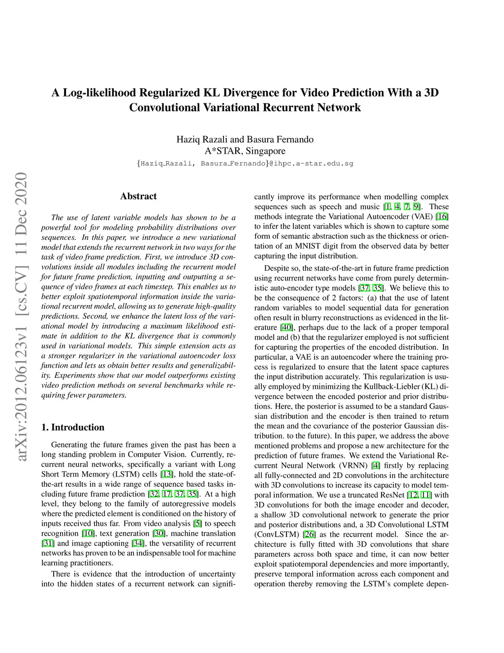 3D Convolutional Variational Recurrent Network
