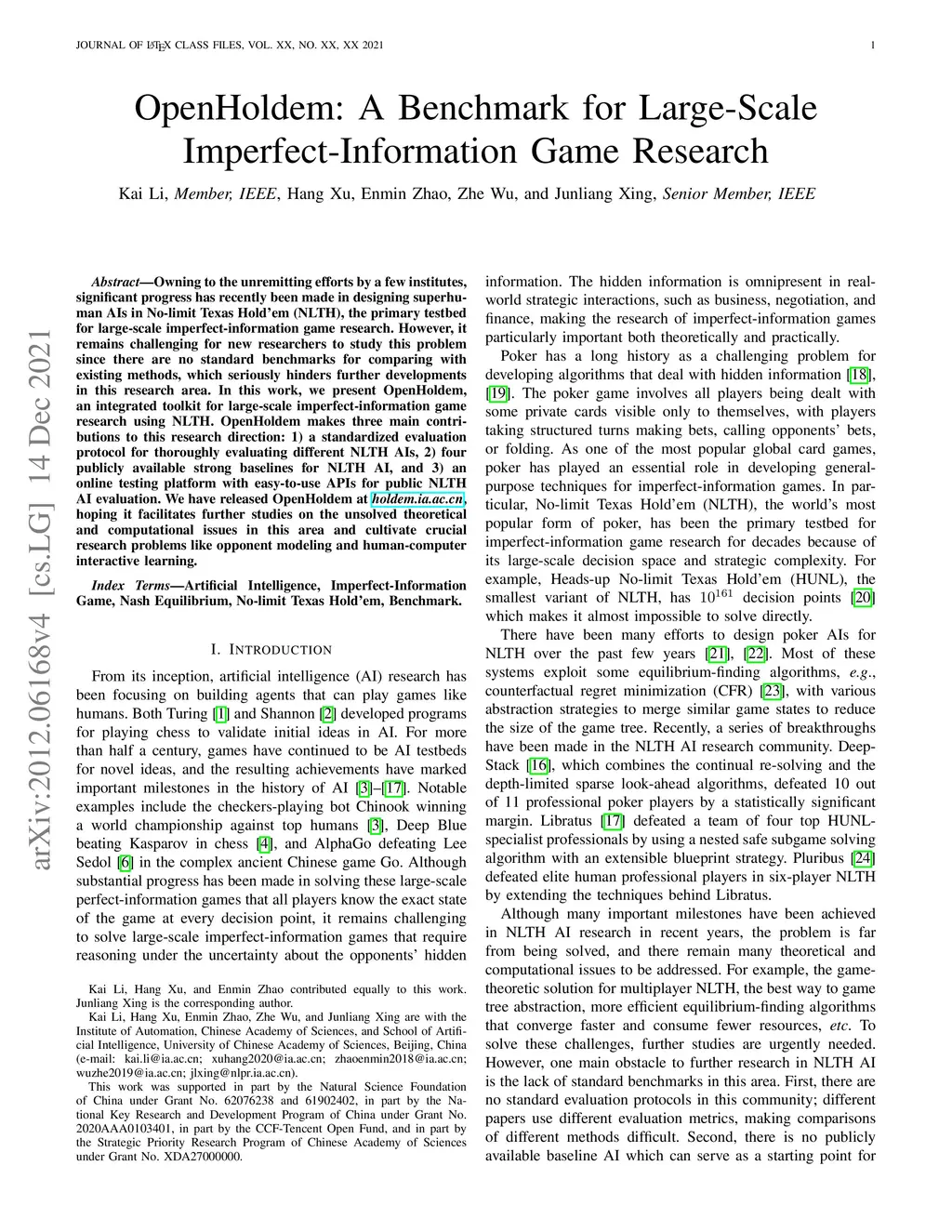 OpenHoldem: A Benchmark for Large-Scale Imperfect-Information Game
