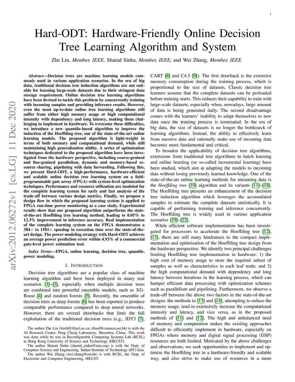 Hard-ODT: Hardware-Friendly Online Decision Tree Learning Algorithm and