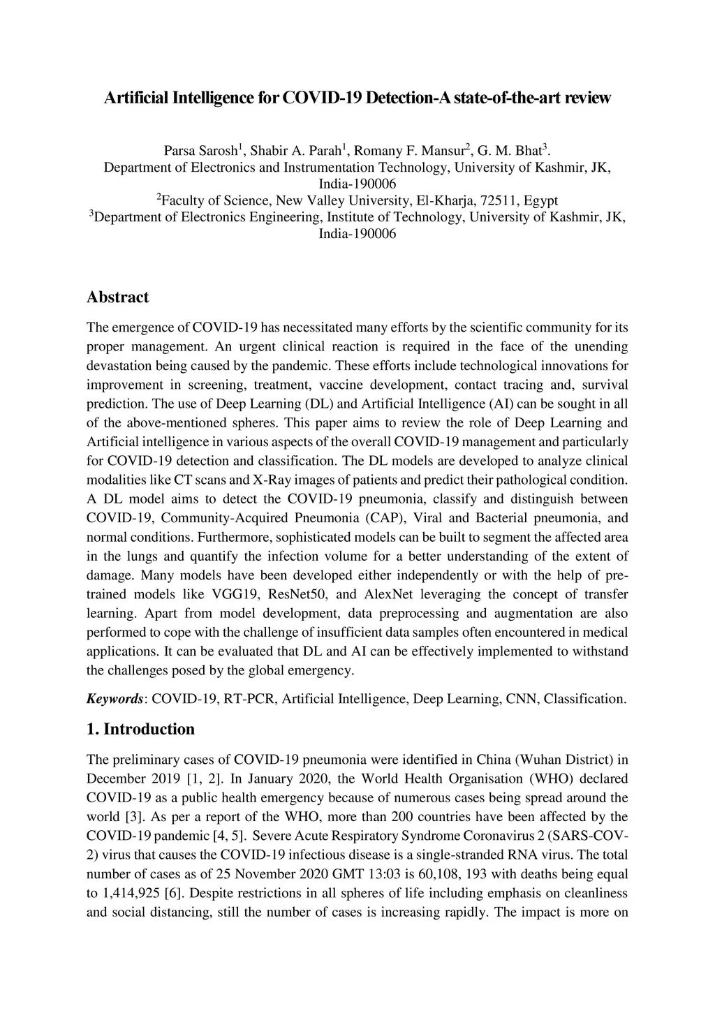 Artificial Intelligence for COVID-19 Detection -- A state-of-the-art
