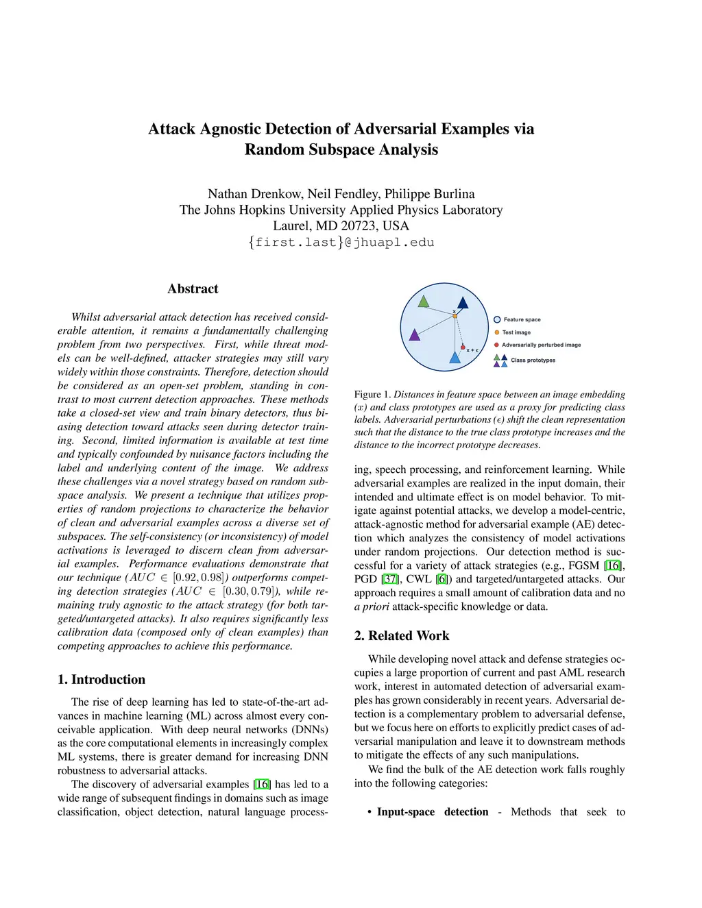 Attack Agnostic Detection of Adversarial Examples via Random Subspace