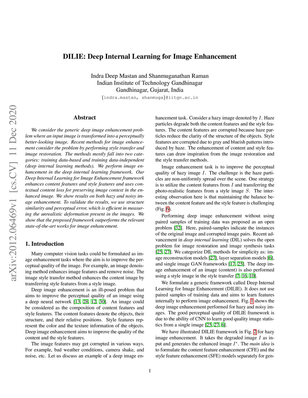 DILIE: Deep Internal Learning for Image Enhancement