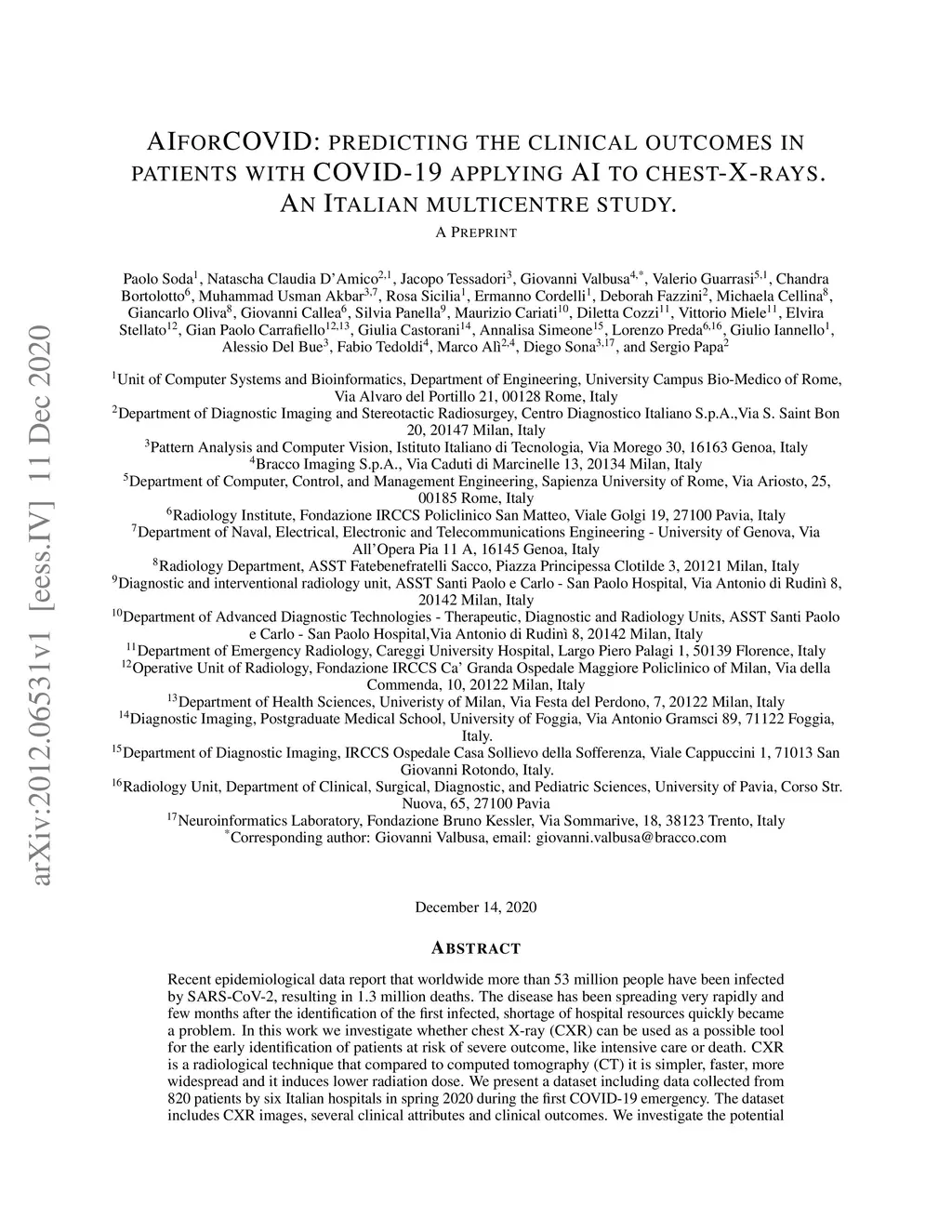 applying AI to chest-X-rays. An Italian multicentre study