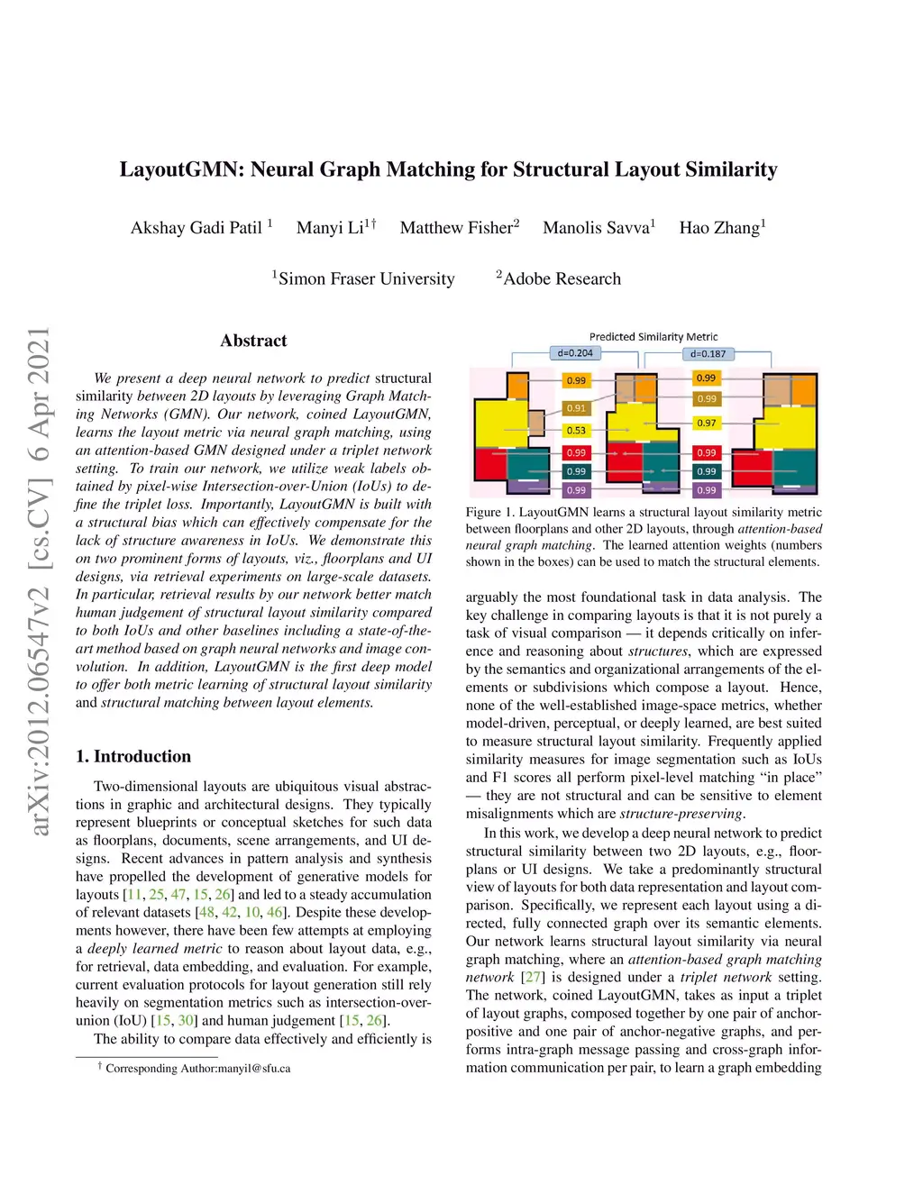 LayoutGMN: Neural Graph Matching for Structural Layout Similarity