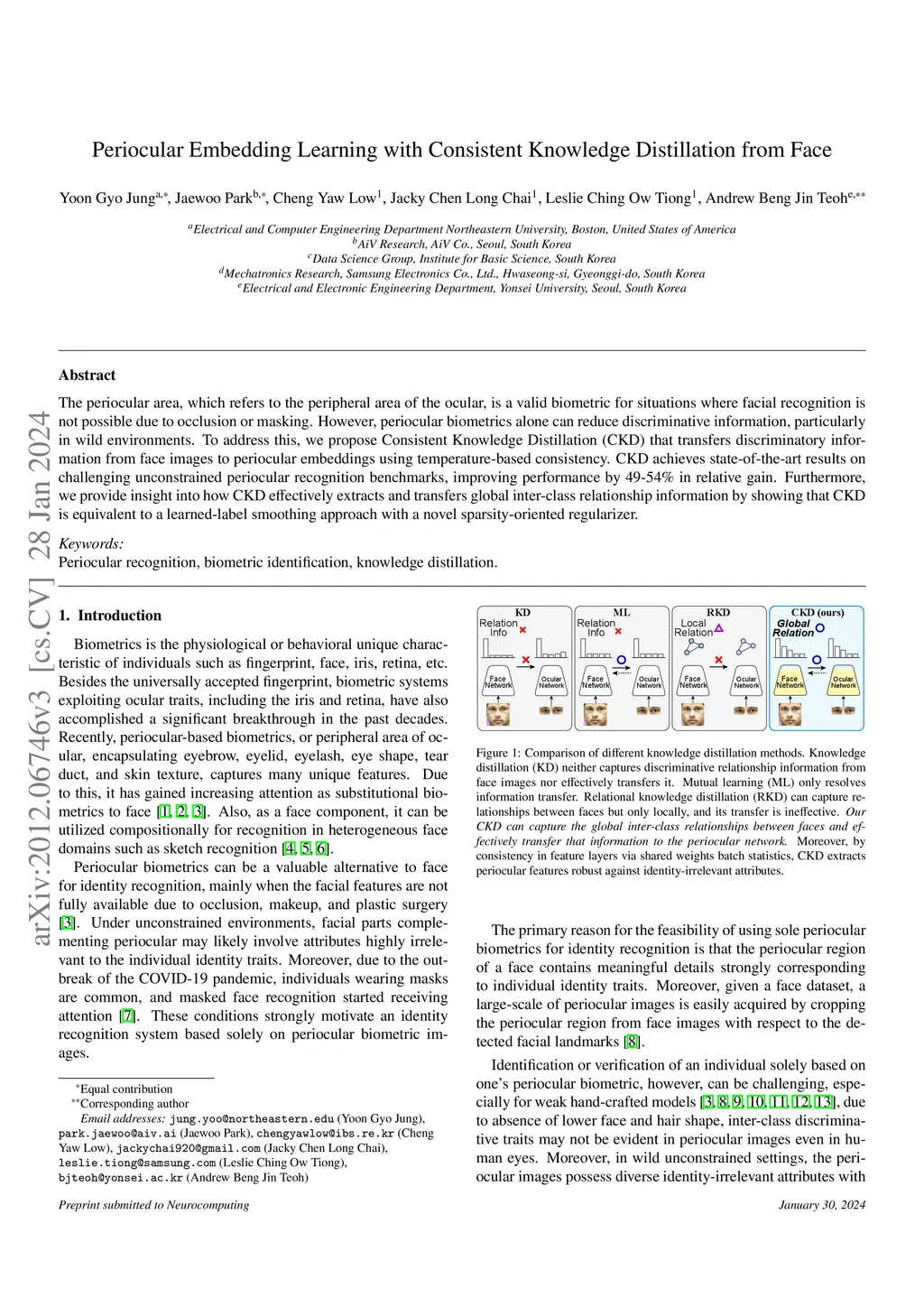 Periocular Embedding Learning with Consistent Knowledge Distillation