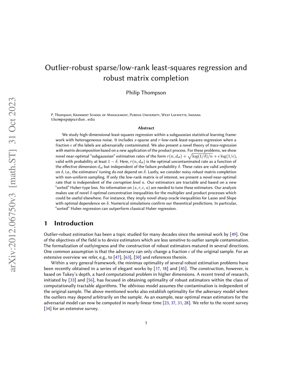 Outlier-robust sparse/low-rank least-squares regression and robust