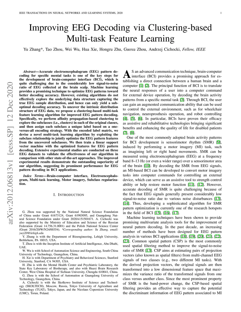 Improving EEG Decoding via Clustering-based Multi-task Feature Learning