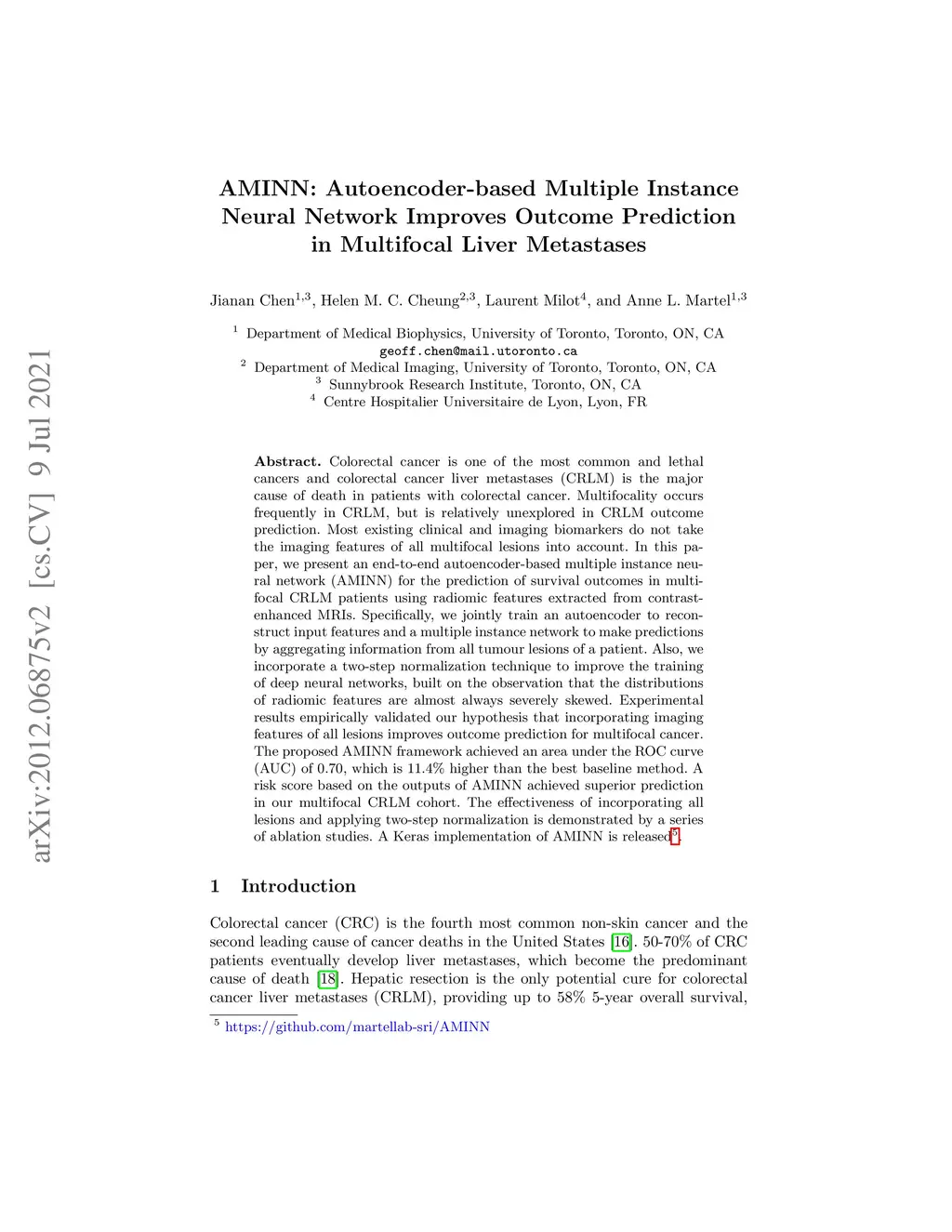 AMINN: Autoencoder-based Multiple Instance Neural Network Improves