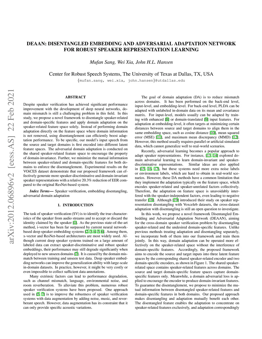 DEAAN: Disentangled Embedding and Adversarial Adaptation Network for
