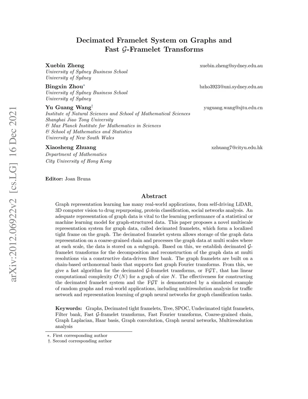 Decimated Framelet System on Graphs and Fast G-Framelet Transforms