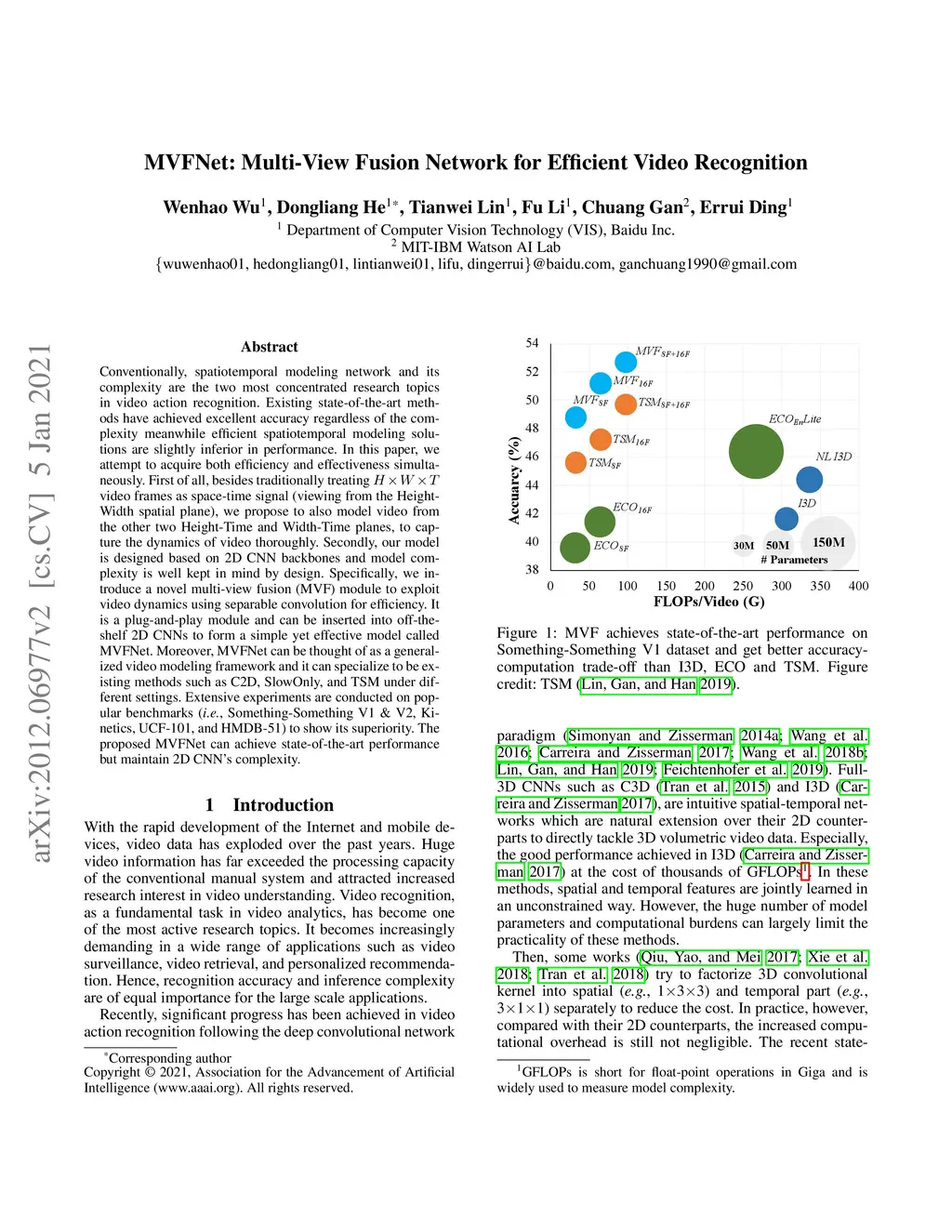 MVFNet: Multi-View Fusion Network for Efficient Video Recognition