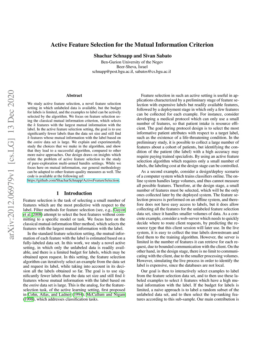 Active Feature Selection for the Mutual Information Criterion