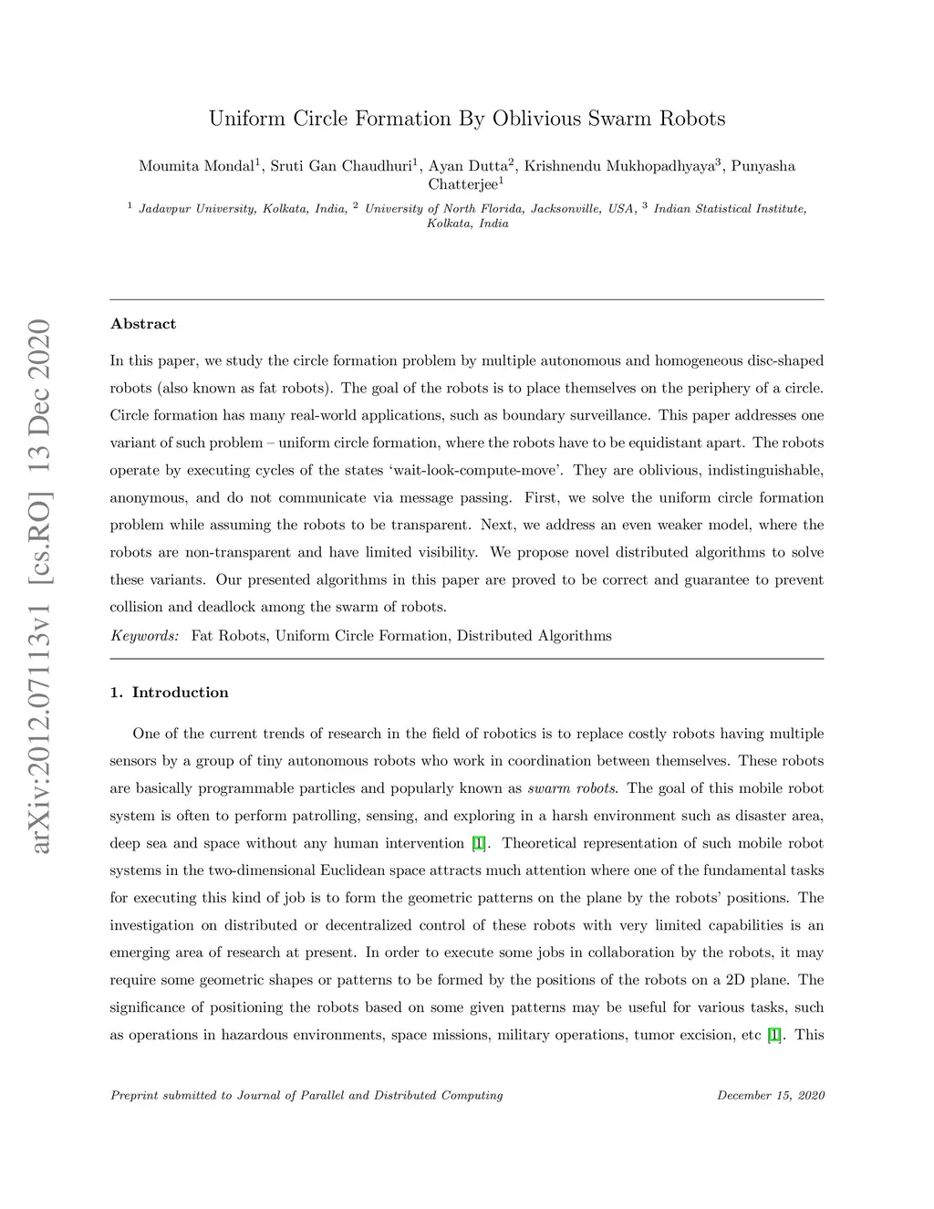 Uniform Circle Formation By Oblivious Swarm Robots
