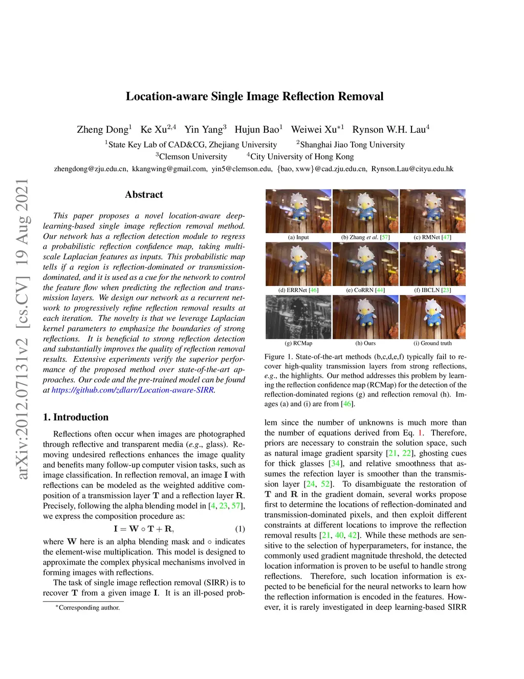 This paper proposes a novel location-aware deep-learning-based single image reflection removal method. Our network has a reflection detection module to regress a probabilistic reflection confidence map, taking multi-scale Laplacian features as inputs. This probabilistic map tells if a region is reflection-dominated or transmission-dominated, and it is used as a cue for the network to control the feature flow when predicting the reflection and transmission layers. We design our network as a recurrent network to progressively refine reflection removal results at each iteration. The novelty is that we leverage Laplacian kernel parameters to emphasize the boundaries of strong reflections. It is beneficial to strong reflection detection and substantially improves the quality of reflection removal results. Extensive experiments verify the superior performance of the proposed method over state-of-the-art approaches. Our code and the pre-trained model can be found at https://github.com/zdlarr/Location-aware-SIRR.