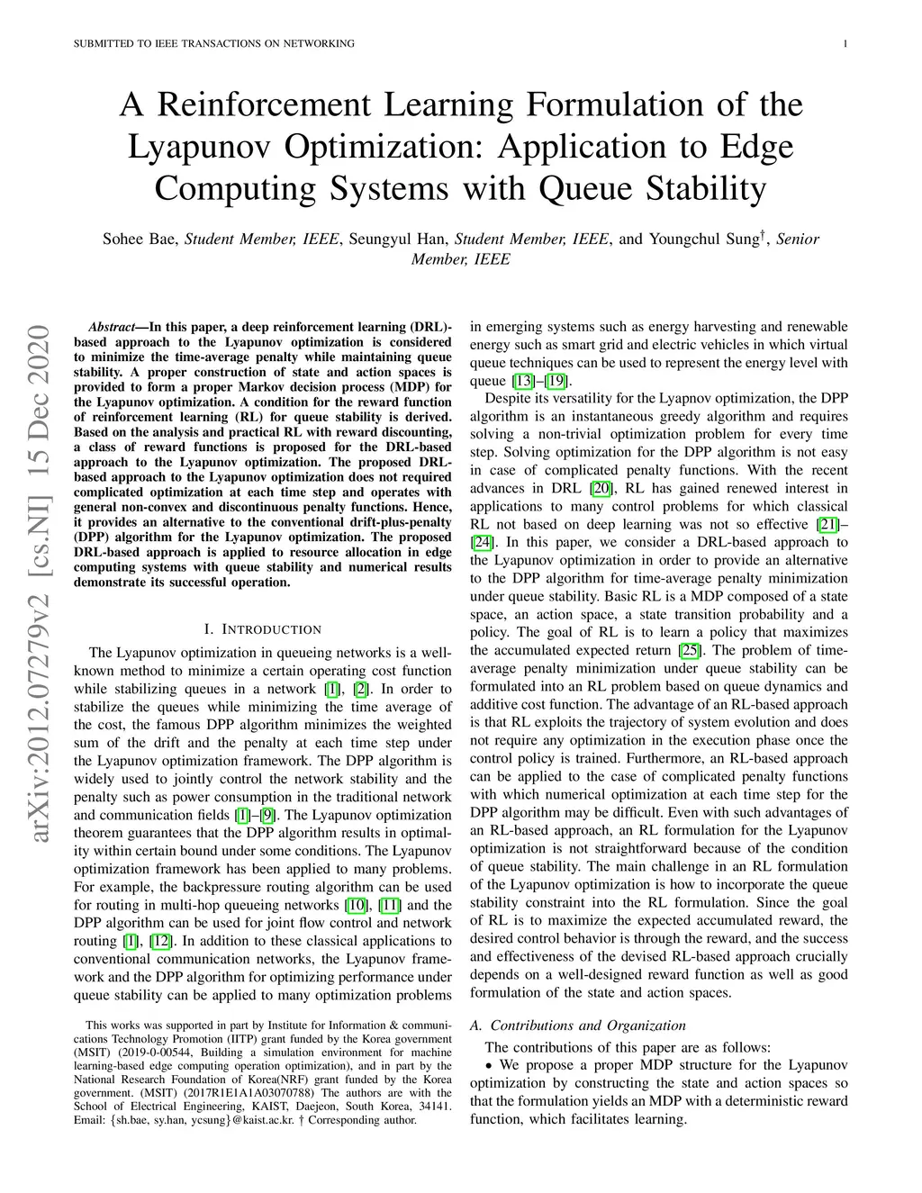 A Reinforcement Learning Formulation of the Lyapunov Optimization: