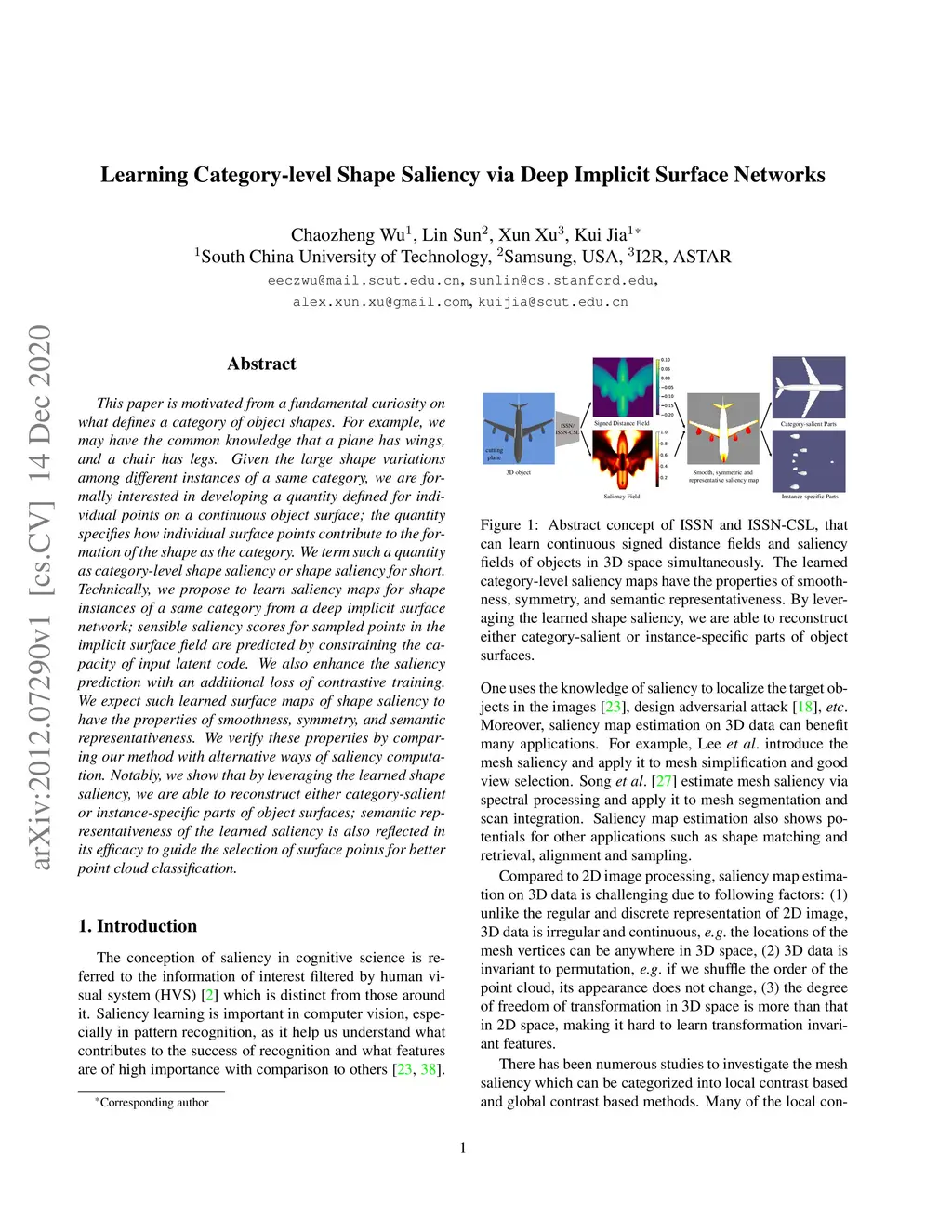 Learning Category-level Shape Saliency via Deep Implicit Surface