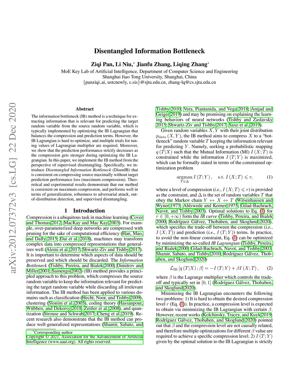 Disentangled Information Bottleneck