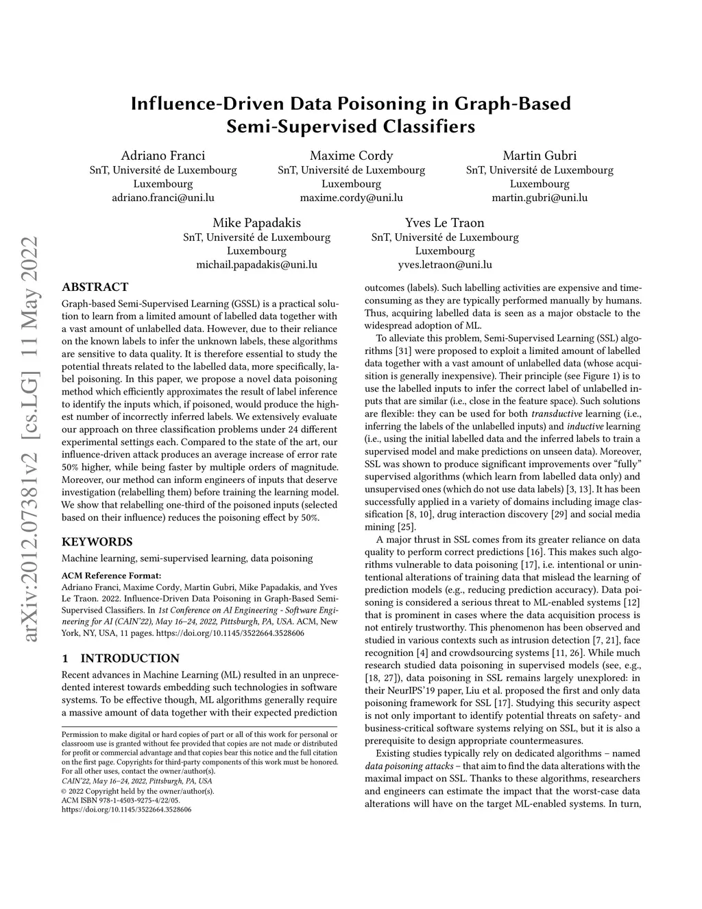 Influence-Driven Data Poisoning in Graph-Based Semi-Supervised