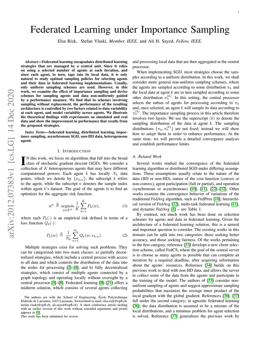 Federated learning encapsulates distributed learning strategies that are managed by a central unit. Since it relies on using a selected number of agents at each iteration, and since each agent, in turn, taps into its local data, it is only natural to study optimal sampling policies for selecting agents and their data in federated learning implementations. Usually, only uniform sampling schemes are used. However, in this work, we examine the effect of importance sampling and devise schemes for sampling agents and data non-uniformly guided by a performance measure. We find that in schemes involving sampling without replacement, the performance of the resulting architecture is controlled by two factors related to data variability at each agent, and model variability across agents. We illustrate the theoretical findings with experiments on simulated and real data and show the improvement in performance that results from the proposed strategies.