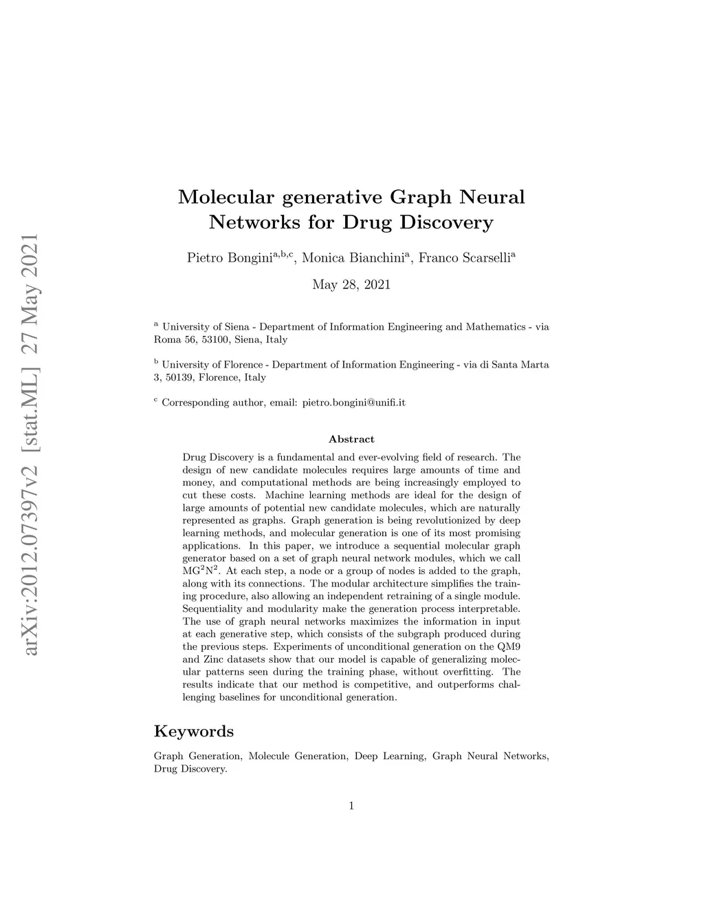 Molecular graph generation with Graph Neural Networks