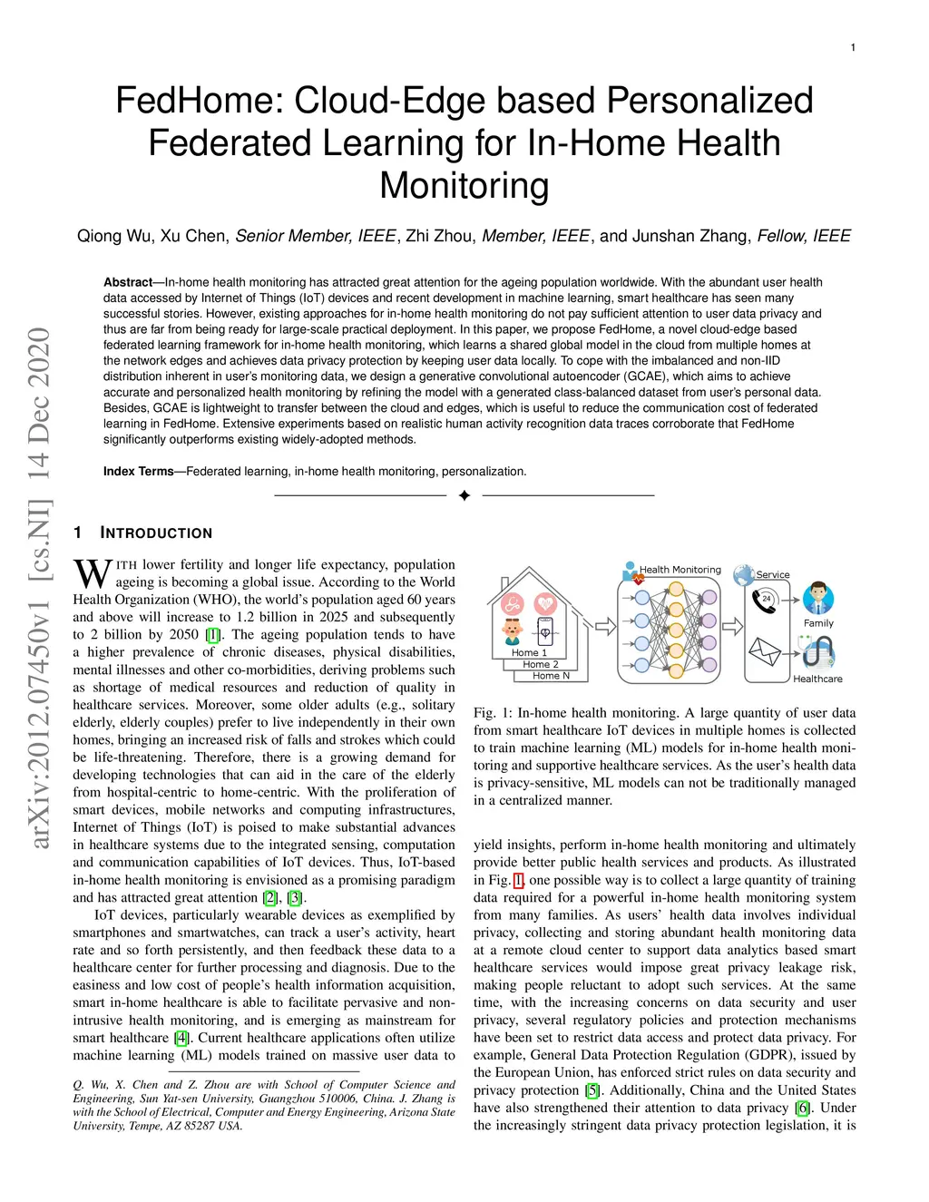 FedHome: Cloud-Edge based Personalized Federated Learning for In-Home