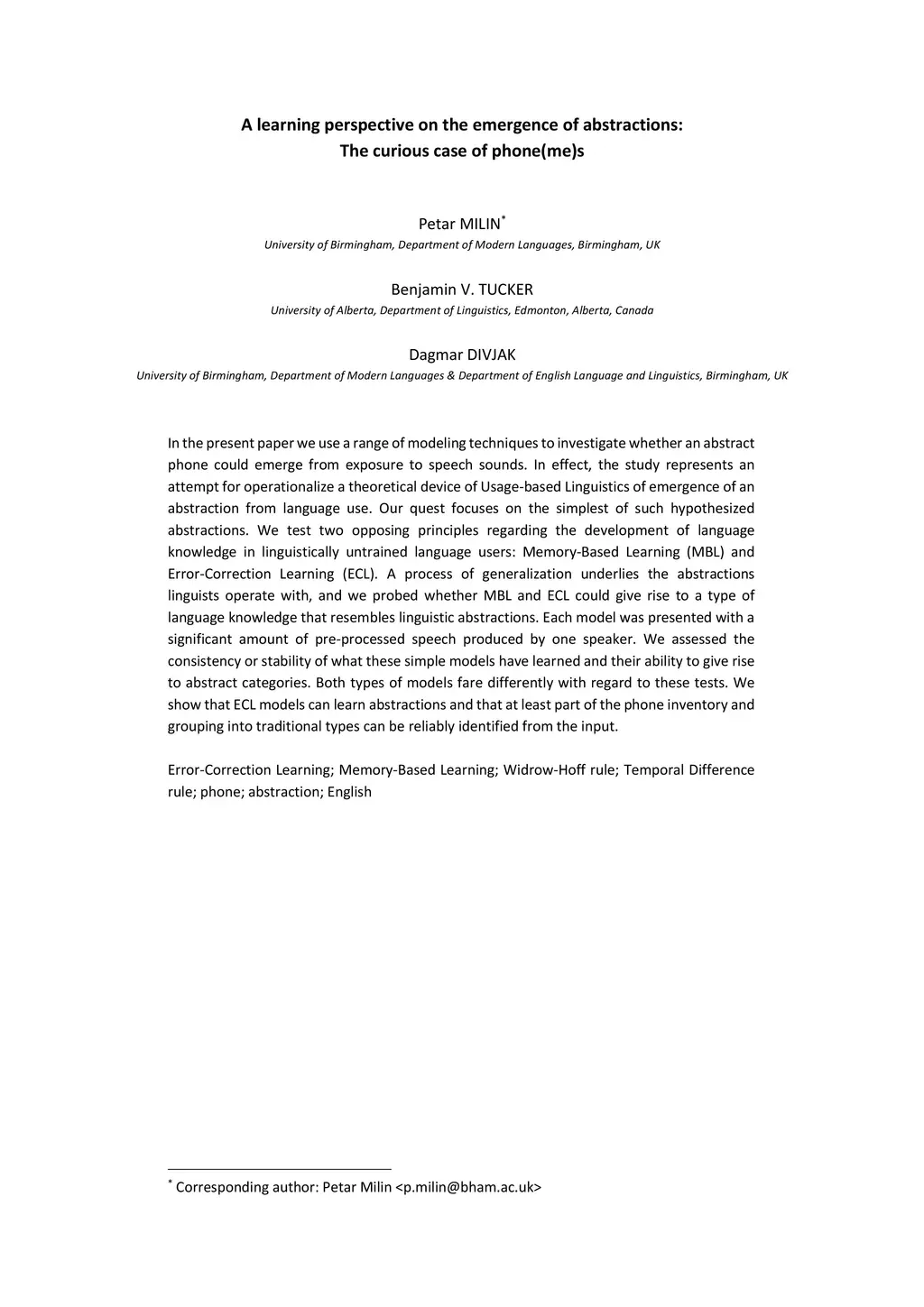 In the present paper we use a range of modeling techniques to investigate whether an abstract phone could emerge from exposure to speech sounds. We test two opposing principles regarding the development of language knowledge in linguistically untrained language users: Memory-Based Learning (MBL) and Error-Correction Learning (ECL). A process of generalization underlies the abstractions linguists operate with, and we probed whether MBL and ECL could give rise to a type of language knowledge that resembles linguistic abstractions. Each model was presented with a significant amount of pre-processed speech produced by one speaker. We assessed the consistency or stability of what the models have learned and their ability to give rise to abstract categories. Both types of models fare differently with regard to these tests. We show that ECL learning models can learn abstractions and that at least part of the phone inventory can be reliably identified from the input.