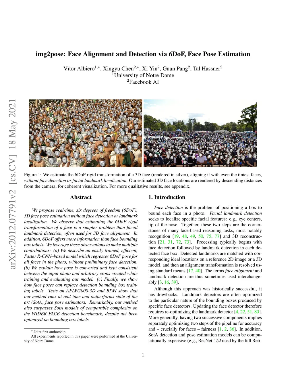img2pose: Face Alignment and Detection via 6DoF, Face Pose Estimation