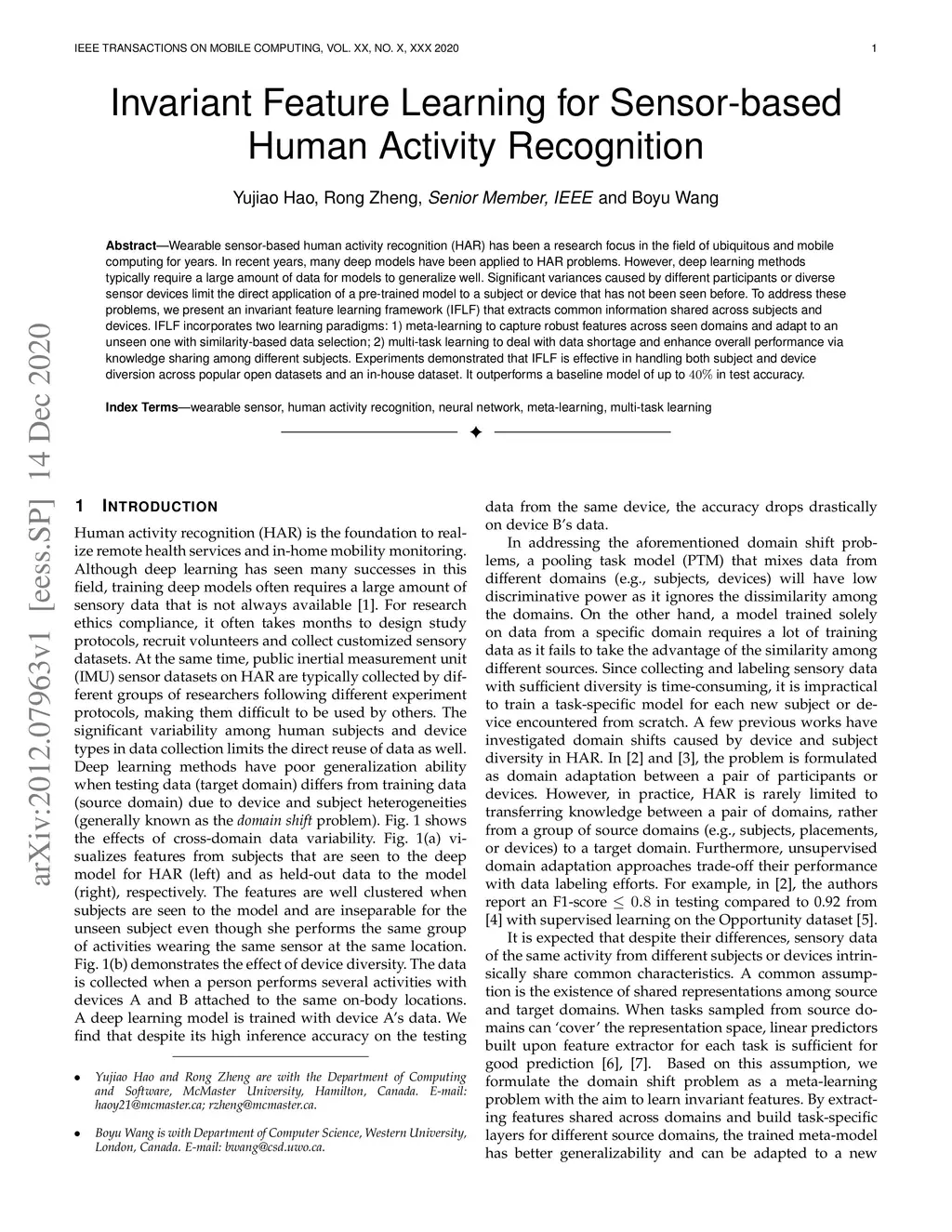 Invariant Feature Learning for Sensor-based Human Activity Recognition