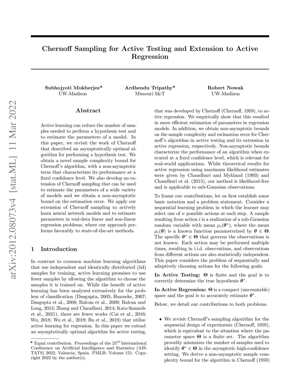 Chernoff Sampling for Active Testing and Extension to Active Regression
