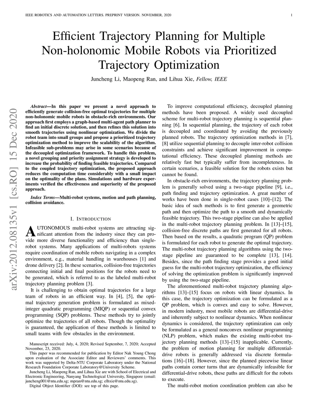 Efficient Trajectory Planning for Multiple Non-holonomic Mobile Robots