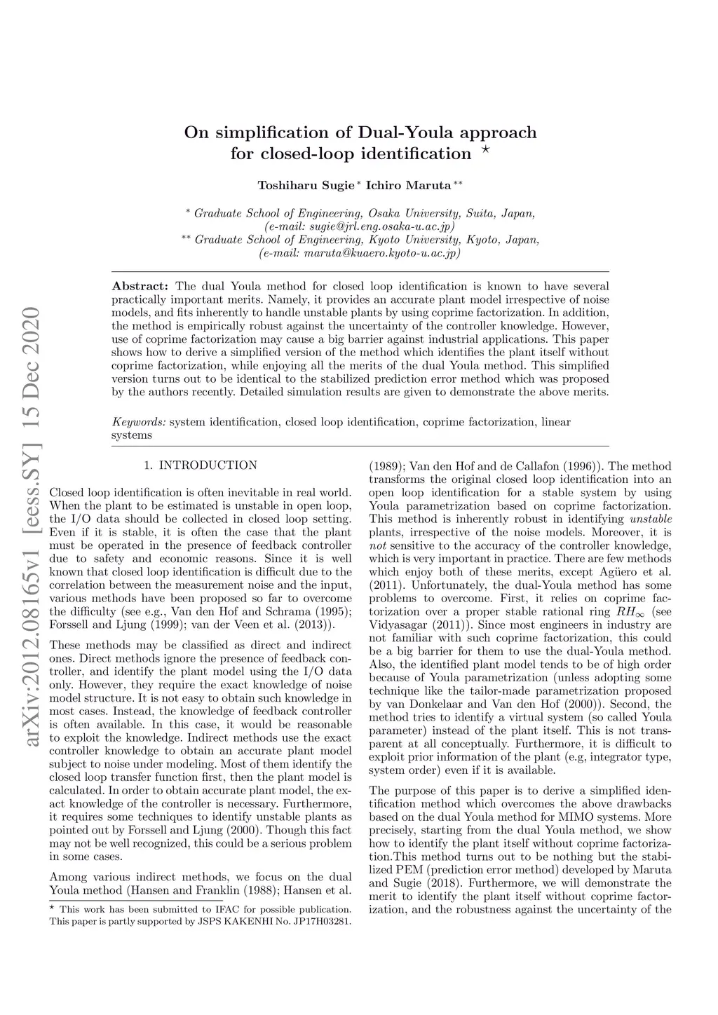 The dual Youla method for closed loop identification is known to have several practically important merits. Namely, it provides an accurate plant model irrespective of noise models, and fits inherently to handle unstable plants by using coprime factorization. In addition, the method is empirically robust against the uncertainty of the controller knowledge. However, use of coprime factorization may cause a big barrier against industrial applications. This paper shows how to derive a simplified version of the method which identifies the plant itself without coprime factorization, while enjoying all the merits of the dual Youla method. This simplified version turns out to be identical to the stabilized prediction error method which was proposed by the authors recently. Detailed simulation results are given to demonstrate the above merits.
